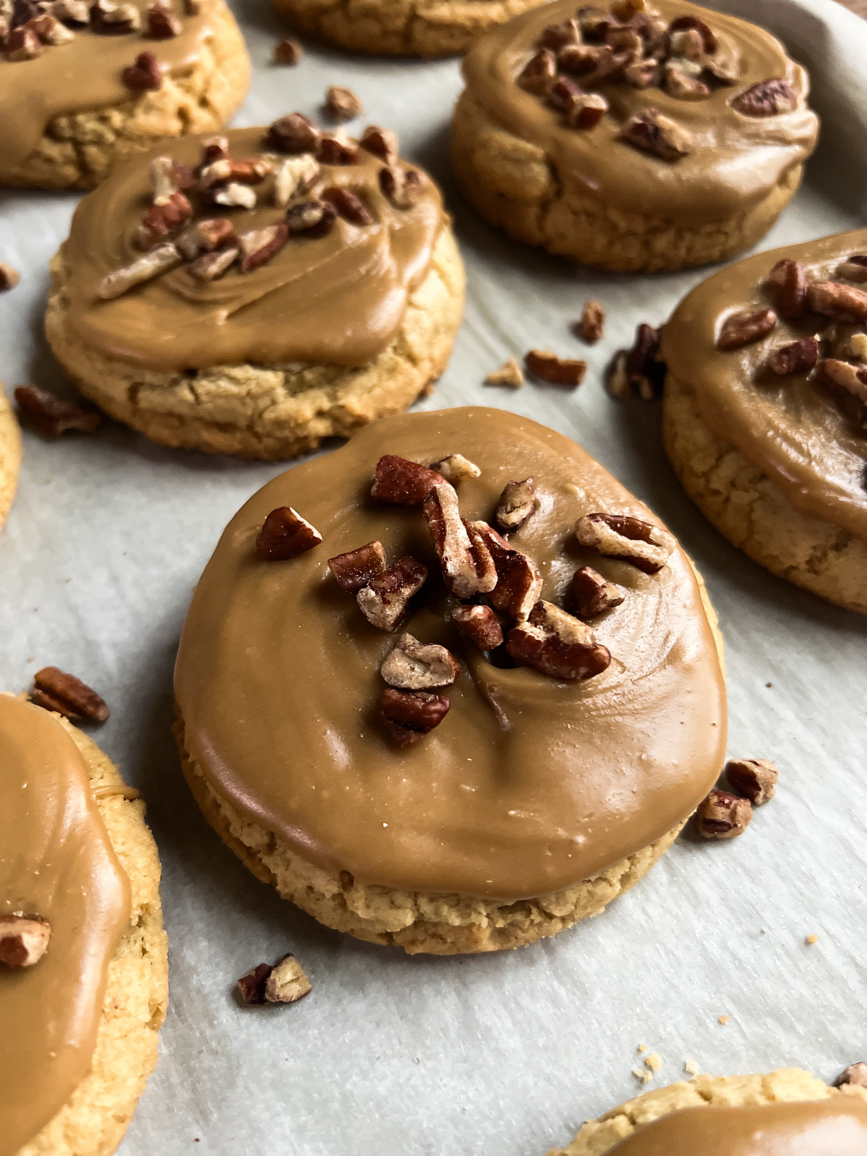 A cookie that tastes like a Noah Kahan playlist. Between the browned butter maple base, and the brown sugar maple glaze topped with pecans you'll feel like Stick Season was written about you. If you pass on this one you'll be stuck between your anger and the blame you can't face.